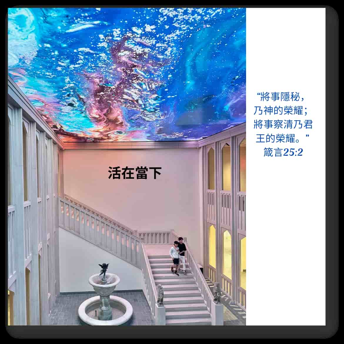 因此,對變化和探索的需求與對穩定和一致性的需求發生了碰撞。這些碰撞會產生緊張,緊張會帶來內心的衝突。雖然我沒有解決這個問題的方法,但我有一些聖經經節可以安慰我—— 《傳道書》3:1-8:「凡事都有定期,天下萬務都有定時。生有時,死有時;栽種有時,拔出所栽種的也有時。… 喜愛有時,恨惡有時;爭戰有時,和好有時。」 這段經文常常提醒我,生命包含了一系列的階段,每個階段都有其特定的目的和時機。探索和創造有其時間,穩定和照顧也有其時間。理解並接受這種節奏,幫助我在這兩種心態之間找到平衡。